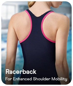 - Thinstrap with racerback design aids shoulder movement